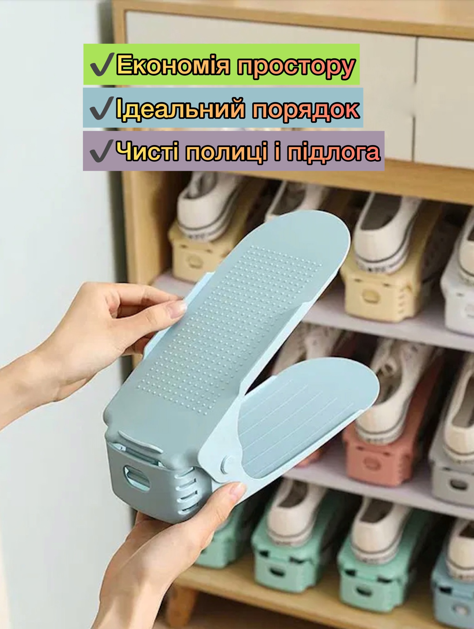 Створіть ідеальний порядок у вашому взуттєвому гардеробі з нашою надійною підставкою! Забудьте про безлад та непорозуміння, адже тепер ваше взуття буде завжди на своєму місці, захищене від пошкоджень і легко доступне. Максимально ефективне використання простору, естетичний дизайн та універсальність - це те, що робить нашу підставку ідеальним вибором для організації вашої колекції взуття. Замовте нашу підставку вже сьогодні і насолоджуйтеся порядком та комфортом у своїй шафі!